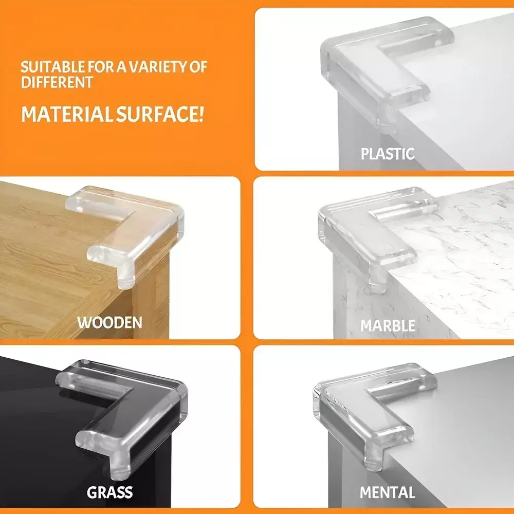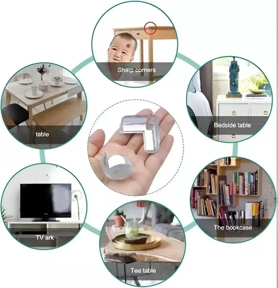 Protector de esquinas diseñado para mesas y muebles, ideal para prevenir golpes, caídas y accidentes domésticos. Su adhesivo resistente garantiza una fijación firme, brindando mayor seguridad y confort en el hogar. Fabricado en silicona suave para amortiguar impactos sin dañar la superficie.